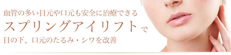 皮膚の引き締め効果と眼輪筋のたわみを引き締めることで目の下のたるみを改善することができる治療です。目の下のたるみの原因である、以下の症状に効果的です。手術による改善までは必要ない。という方にお勧めの治療法です。